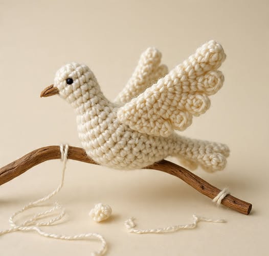 The head and beak details bring personality to the Peace Dove Crochet Tutorial. Simple shaping techniques keep the design beginner-friendly while still achieving a recognizable form.