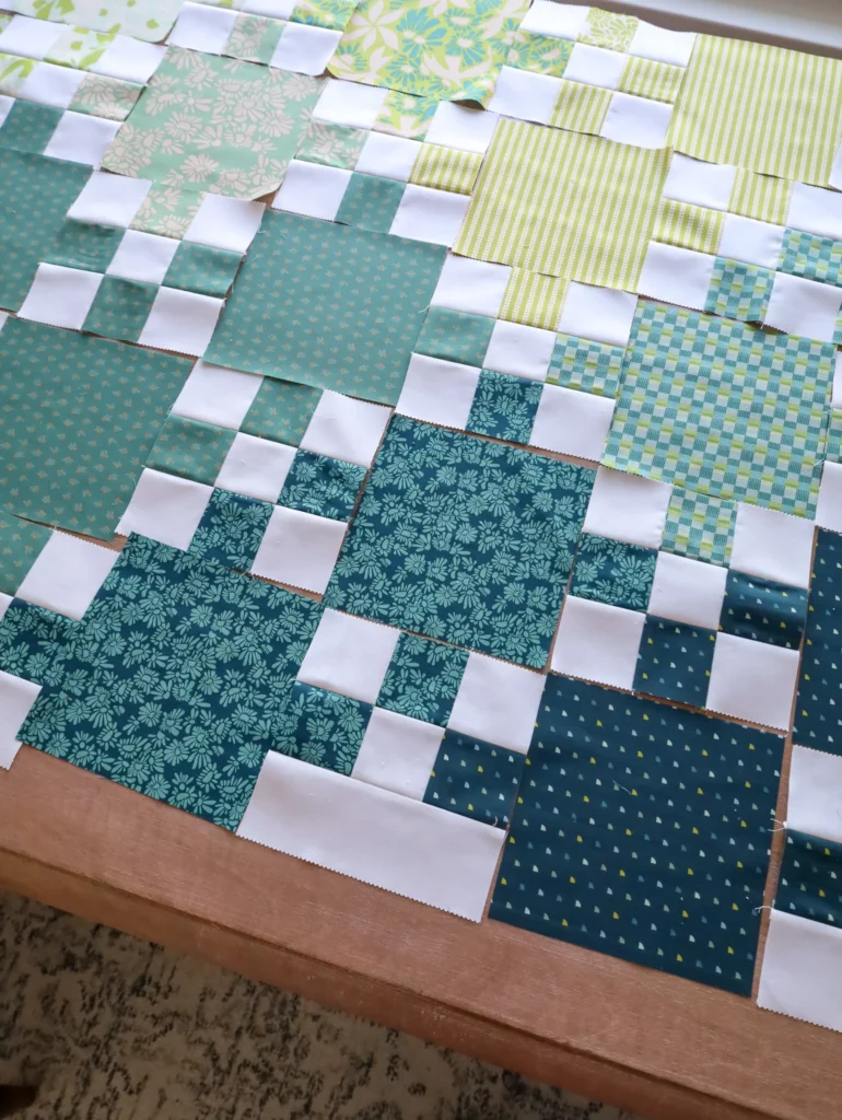 Lay out your blocks following the pattern’s layout. This visual arrangement helps you confirm that your chosen colors and fabrics complement each other before you begin stitching. You can rearrange pieces until you achieve the desired contrast and balance.