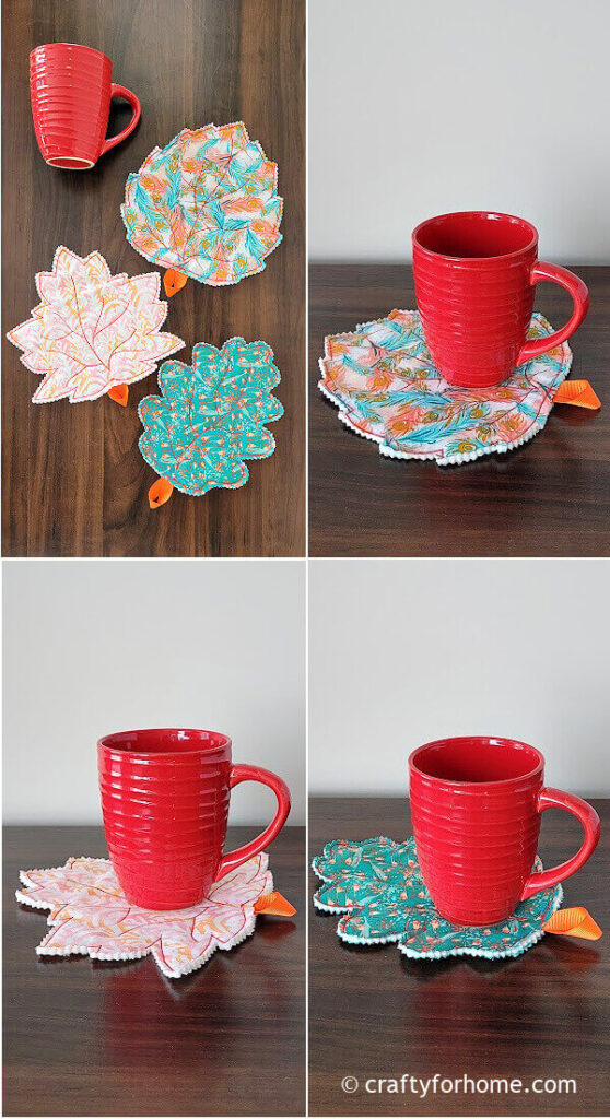 Adding embellishments like embroidery or hand-stitched details can make each coaster one of a kind. A few decorative stitches along the veins of the leaf add elegance and depth to the overall design.