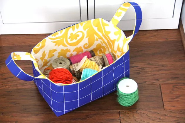 Begin with two coordinating fabrics. Since the basket is reversible, you will want both sides to look attractive. Quilting cotton is a great choice because it is easy to work with and comes in endless patterns. Pair a bold print with a solid or choose two complementary designs.