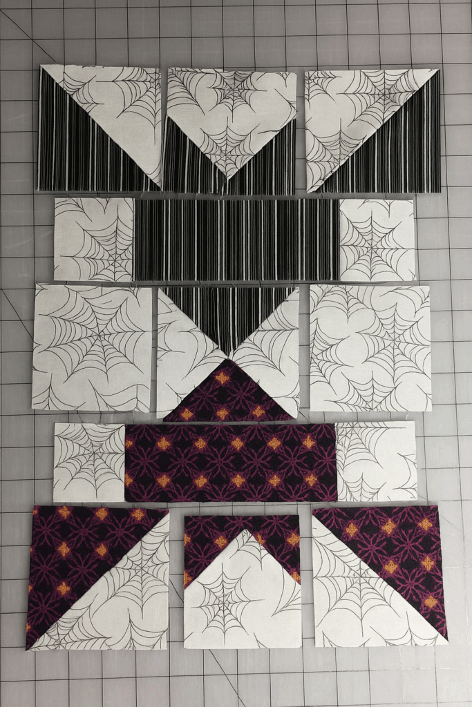 Choosing fabric for this block can be a lot of fun. If you’re going for a traditional Halloween look, blacks, grays, and purples work beautifully. For a modern twist, try using high-contrast colors like white and orange, or even metallic fabrics for extra sparkle. Your fabric choices can completely transform the look of the design.