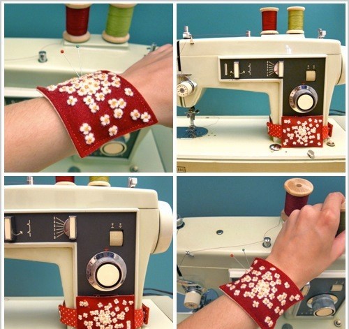 It serves both as a functional pincushion to hold pins securely and as a decorative flower to brighten your sewing space.